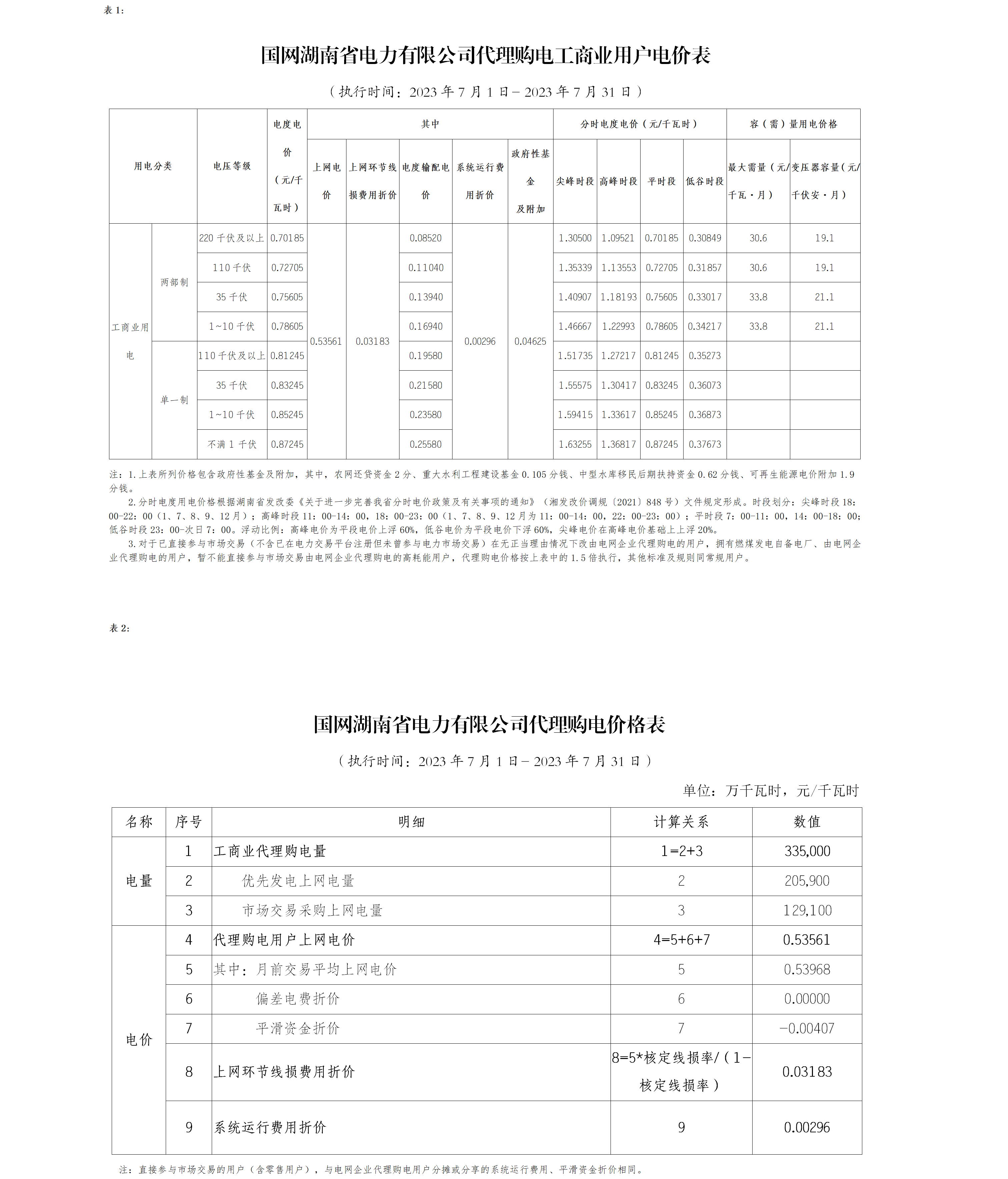 湖南2023年7月電網(wǎng)代理購電價格公布