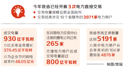 河南電力直接交易降本增效顯著 已成交電量930億千瓦時(shí)超過去年全年