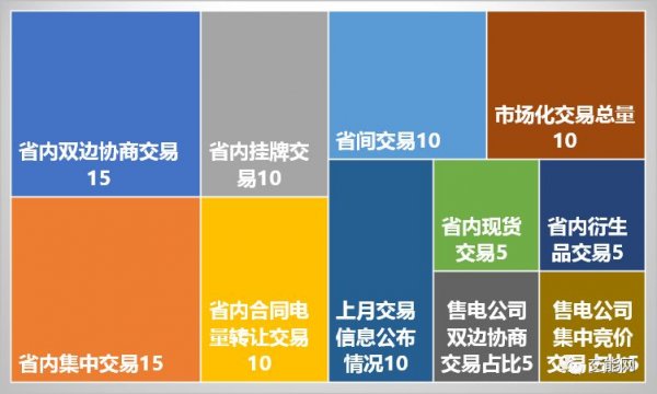 交能售電交易動態(tài)指數(shù)在發(fā)布的初始就希望成為所有電力交易參與者與關(guān)注者的市場指示劑和分析工具,2018年的指數(shù)將采用全新的規(guī)則和評分標(biāo)準(zhǔn),共通過11個權(quán)重來評估各省的電力交易動態(tài)。其中最大的改動為將評估周期改為電量周期,即每個月月初發(fā)布的指數(shù)評估的對象為上月“電量”的交易情況。在此評估環(huán)境下,指數(shù)的分析結(jié)果有一定的滯后性,但是該指數(shù)能夠全面地反映出各個地區(qū)的電力交易基本面特性,此外,我們又創(chuàng)新性地將上月公布電力交易量作為分項加入到總的評分體系中,使得分?jǐn)?shù)兼具基本面特性與時效性。