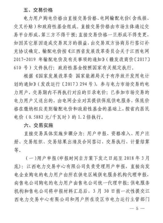 江西省能源局日前發(fā)布了《江西省2018年度電力直接交易實(shí)施方案》,方案中稱,2018年江西直接交易電量規(guī)模不低于240億千瓦時(shí),同比增長60%以上,電力用戶、售電公司與發(fā)電企業(yè)直接交易合同電量允許偏差不超過±5。