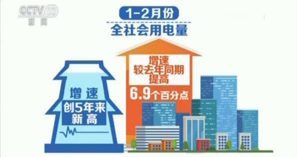 1到2月份,全社會用電量同比增長13.3%,增速較去年同期提高6.9個百分點,創(chuàng)5年來新高。