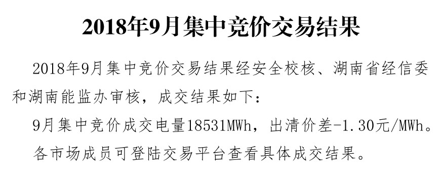 湖南9月月度集中競價(jià)交易:成交電量18531兆瓦時(shí)