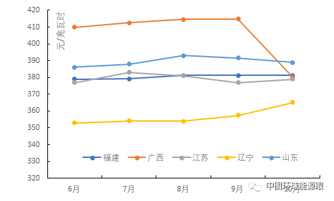 山東成交電價(jià)389元/兆瓦時(shí),環(huán)比下降0.64%;成交電量4.48億千瓦時(shí),環(huán)比增長13.58%,全部為售電公司成交電量。