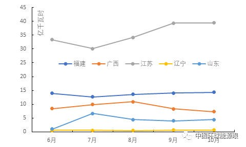 圖 2重點(diǎn)地區(qū)2018年6-10月月度集中競價(jià)交易的成交電量