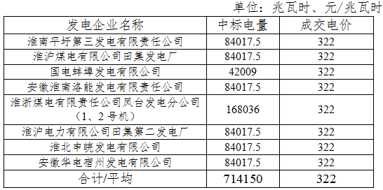 在本次交易過程中,各發(fā)電企業(yè)積極參與、自愿申報,共有9家發(fā)電企業(yè)與了此次掛牌交易申報,總投標電量9.3億千瓦時。按照交易規(guī)則出清并經(jīng)安全校核后,8家發(fā)電企業(yè)中標,成交電量7.1415億千瓦時。具體成交情況如下: