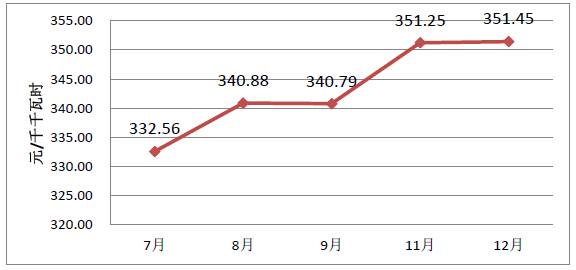 本次交易成交均價為351.45元/千千瓦時。冀北地區(qū)2017年月度直接交易成交均價完成情況如下: