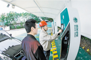 蘇州供電公司員工為純電動(dòng)公交車充電。 謝鵬 攝