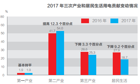 第二產業(yè)用電對全社會用電量增長的貢獻率達54.0%:第二產業(yè)仍是拉動全社會用電增長的主要動力,拉動全社會用電量增長3.0個百分點。第三產業(yè)和居民用電增長較快。