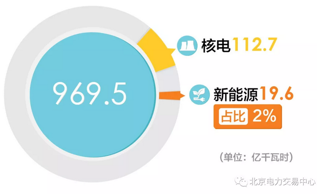 2018年2月,在北京電力交易中心交易平臺開展市場化交易18筆,交易規(guī)模969 5億千瓦時,其中,新能源19 6億千瓦時、占比2%,核電112 7億千瓦