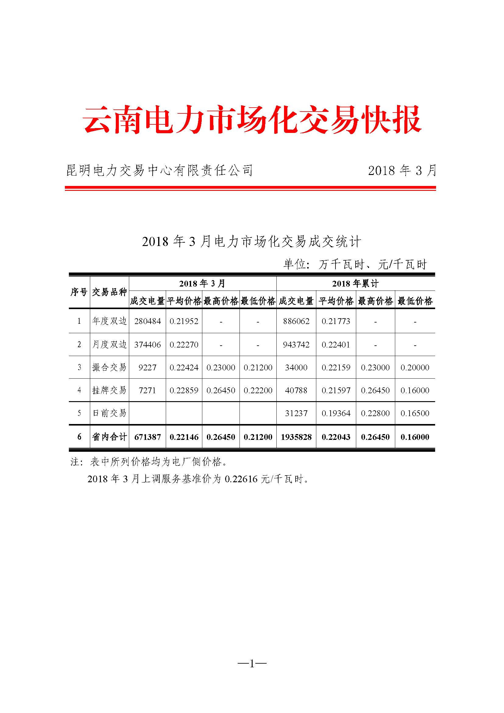 云南2018年3月電力市場化交易月報(bào):省內(nèi)合計(jì)成交電量671387萬千瓦時(shí)
