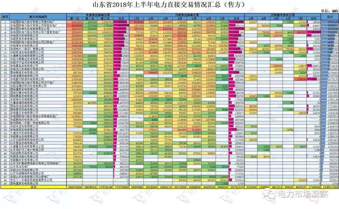 2018年上半年,山東省開展了三次年度雙邊協(xié)商交易以及1-7月月度電力直接交易,為您做個(gè)匯總整理,概況如下: