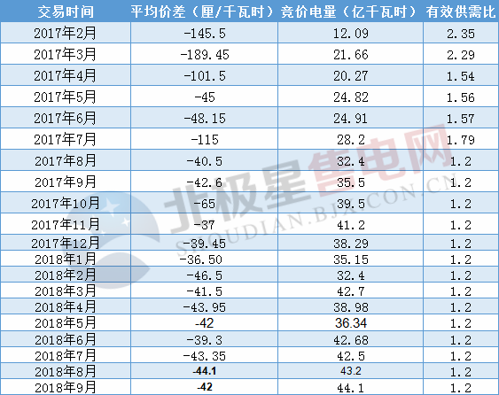 值得注意的是,本月價(jià)差再度持續(xù)收窄,平均價(jià)差僅為-42厘/千瓦時(shí),成交量與上月相比有所提升并創(chuàng)新高。9月份市場用電總需求電量為145.3億千瓦時(shí),扣除年度合同電量101.1億千瓦時(shí)后,集中競爭電量需求為44.2億千瓦時(shí),9月集中競爭電量需求扣除必開頂峰電量28.9億、已申請強(qiáng)制成交電量5.1億千瓦時(shí)后,有效競爭電量需求為10.2億千瓦時(shí)。