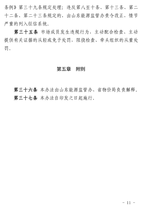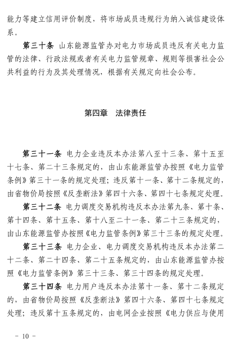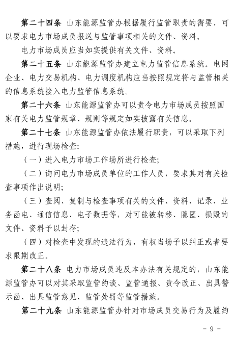 國家能源局山東監(jiān)管辦、山東省物價局日前發(fā)布了《山東省電力市場監(jiān)管辦法(試行)》。辦法適用于山東省內(nèi)和涉及山東省的跨省跨區(qū)電力市場的監(jiān)管。辦法中提到,對參與交易的市場成員的市場份額和市場力情況實施監(jiān)