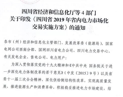專變工業(yè)用戶全面放開!四川省2019年省內(nèi)電力市場化交易實(shí)施方案印發(fā)