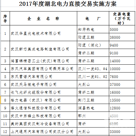 湖北省2017年電力直接交易實(shí)施方案印發(fā)
