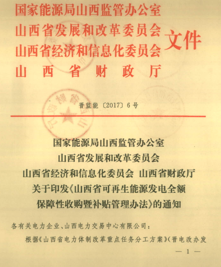 山西發(fā)改委、經(jīng)信委、財政廳、山西能監(jiān)辦近日聯(lián)合發(fā)布《關于印發(fā)山西省可再生能源發(fā)電全額保障性收購暨補貼管理辦法》的通知,辦法適用于山西省境內風力發(fā)電、太陽能發(fā)電、生物質能發(fā)電、地熱能發(fā)電等非水可再生