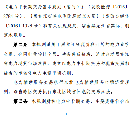 《黑龍江省電力中長期交易規(guī)則》(暫行)