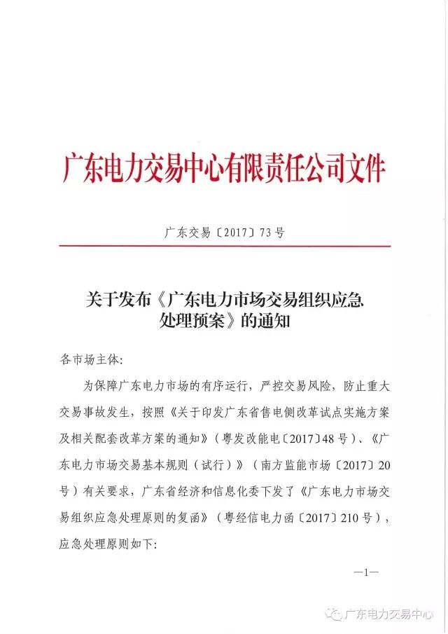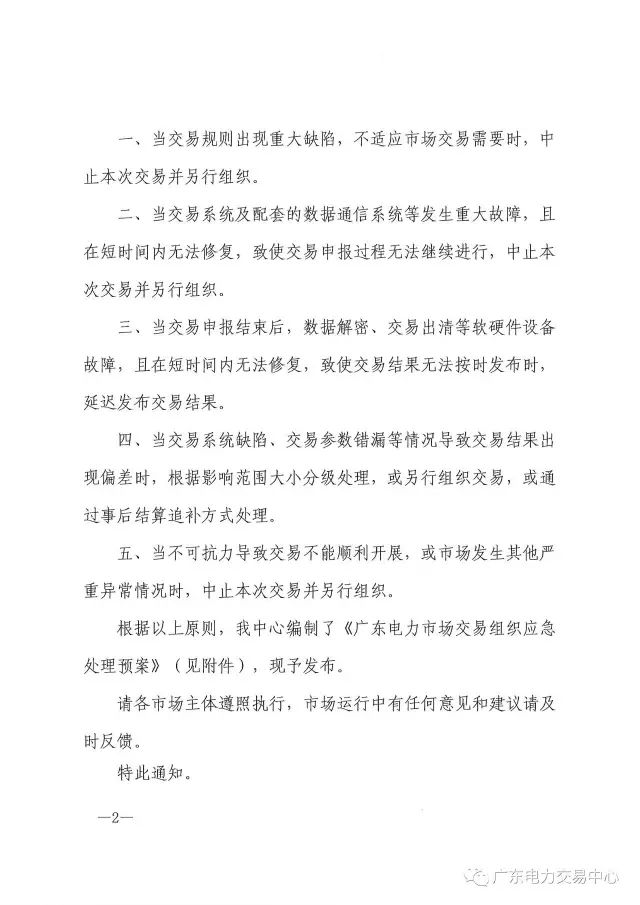為保障廣東電力市場的有序運行,嚴控交易風險,廣東電力交易中心發(fā)布了《廣東電力市場交易組織應(yīng)急處理預(yù)案》,通知正文如下: