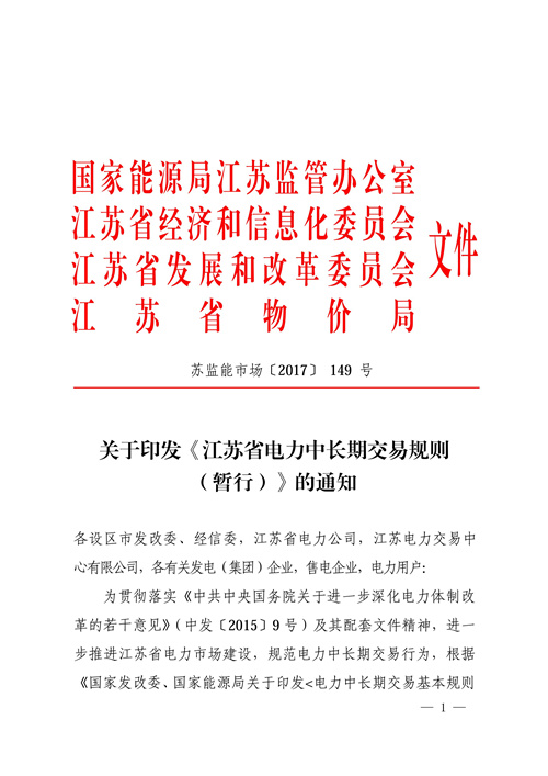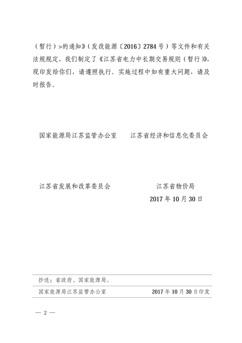 江蘇省電力中長期交易規(guī)則(暫行)