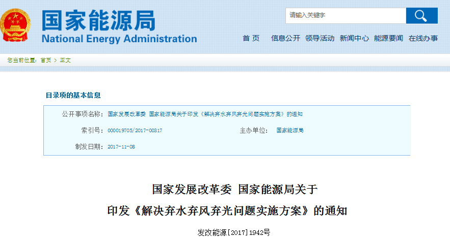 印發(fā)《解決棄水棄風(fēng)棄光問(wèn)題實(shí)施方案》的通知