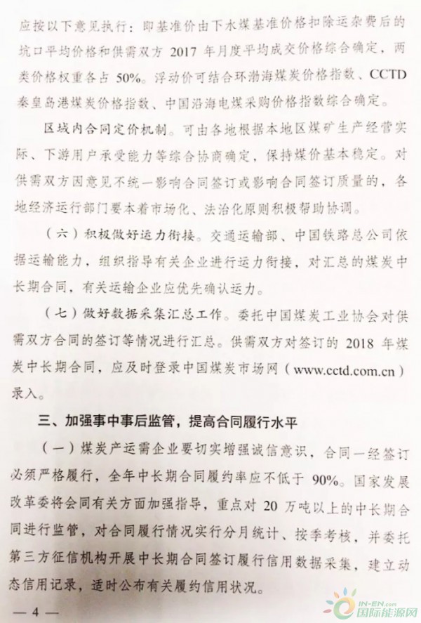 近日,國家發(fā)改委印發(fā)了《國家發(fā)展改革委辦公廳關(guān)于推進(jìn)2018年煤炭中長期合同簽訂履行工作的通知》,文件要求充分認(rèn)識煤炭中長期合同的重要作用,進(jìn)一步創(chuàng)新方式推動建立長期穩(wěn)定合作關(guān)系,包括:支持企業(yè)自主簽訂合同、鼓勵供需雙方直購直銷、支持多簽中長期合同、規(guī)范合同簽訂行為、完善電煤合同的價格機(jī)制、積極做好運(yùn)力銜接、做好數(shù)據(jù)采集匯總工作。在“完善電煤合同價格機(jī)制”這一條中說明了下水煤合同、鐵路直達(dá)煤合同、區(qū)域內(nèi)合同三種不同情況下的合同定價要求。詳情如下: