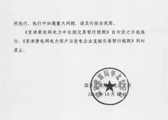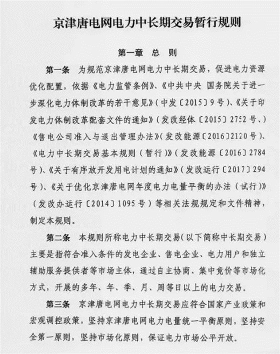 國(guó)家能源局發(fā)布了《京津唐電網(wǎng)電力中長(zhǎng)期交易暫行規(guī)則》