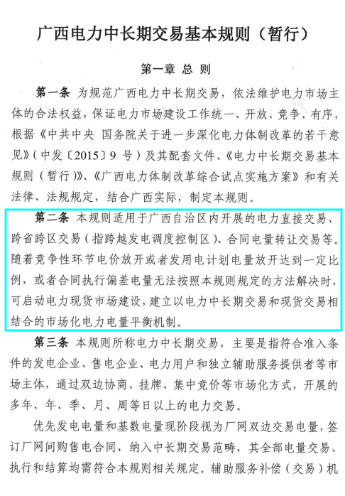 南方能源監(jiān)管局、廣西自治區(qū)工業(yè)和信息化委、廣西自治區(qū)發(fā)改委12月1日聯(lián)合印發(fā)了《廣西電力中長期交易基本規(guī)則(暫行)》。