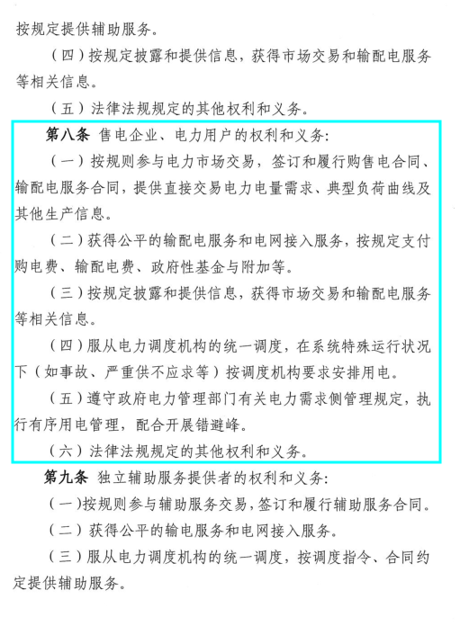 自愿參與市場交易的電力用戶原則上全部電量進入市場,不得隨意退出市場,逐步取消目錄電價;符合準(zhǔn)入條件但未選擇參與直接交易的電力用戶、不符合準(zhǔn)入條件的電力用戶由所在地供電企業(yè)按政府定價提供供電服務(wù)。