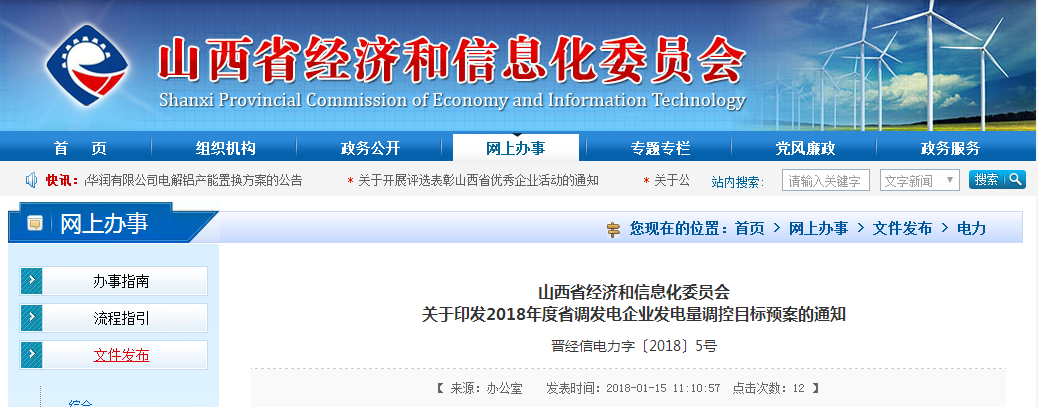 山西經(jīng)信委:2018年度省調(diào)發(fā)電企業(yè)發(fā)電量調(diào)控目標(biāo)預(yù)案