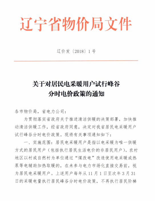 遼寧對(duì)居民電采暖用戶試行峰谷分時(shí)電價(jià)政策