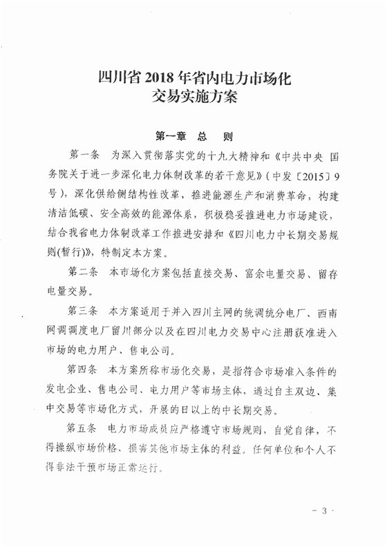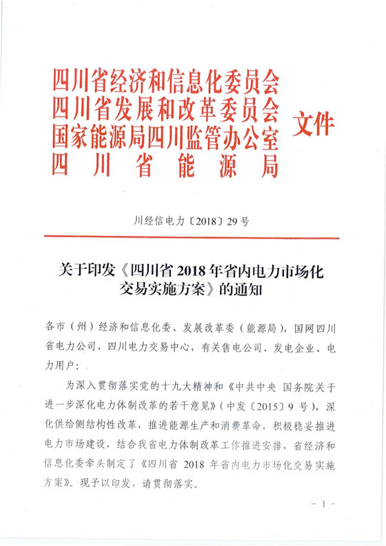 四川省經(jīng)信委、四川省發(fā)改委、國家能源局四川監(jiān)管辦、四川省能源局日前聯(lián)合發(fā)布了《四川省2018年省內(nèi)電力市場化交易實施方案》,方案中稱,