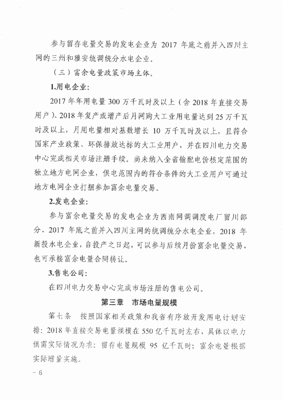 四川省經(jīng)信委、四川省發(fā)改委、國家能源局四川監(jiān)管辦、四川省能源局日前聯(lián)合發(fā)布了《四川省2018年省內(nèi)電力市場化交易實施方案》,方案中稱,四川2018年直接交易電量規(guī)模在550億千瓦時左右,留存電量規(guī)模95億千瓦時。市場化方案包括直接交易、富余電量交易、留存電量交易。