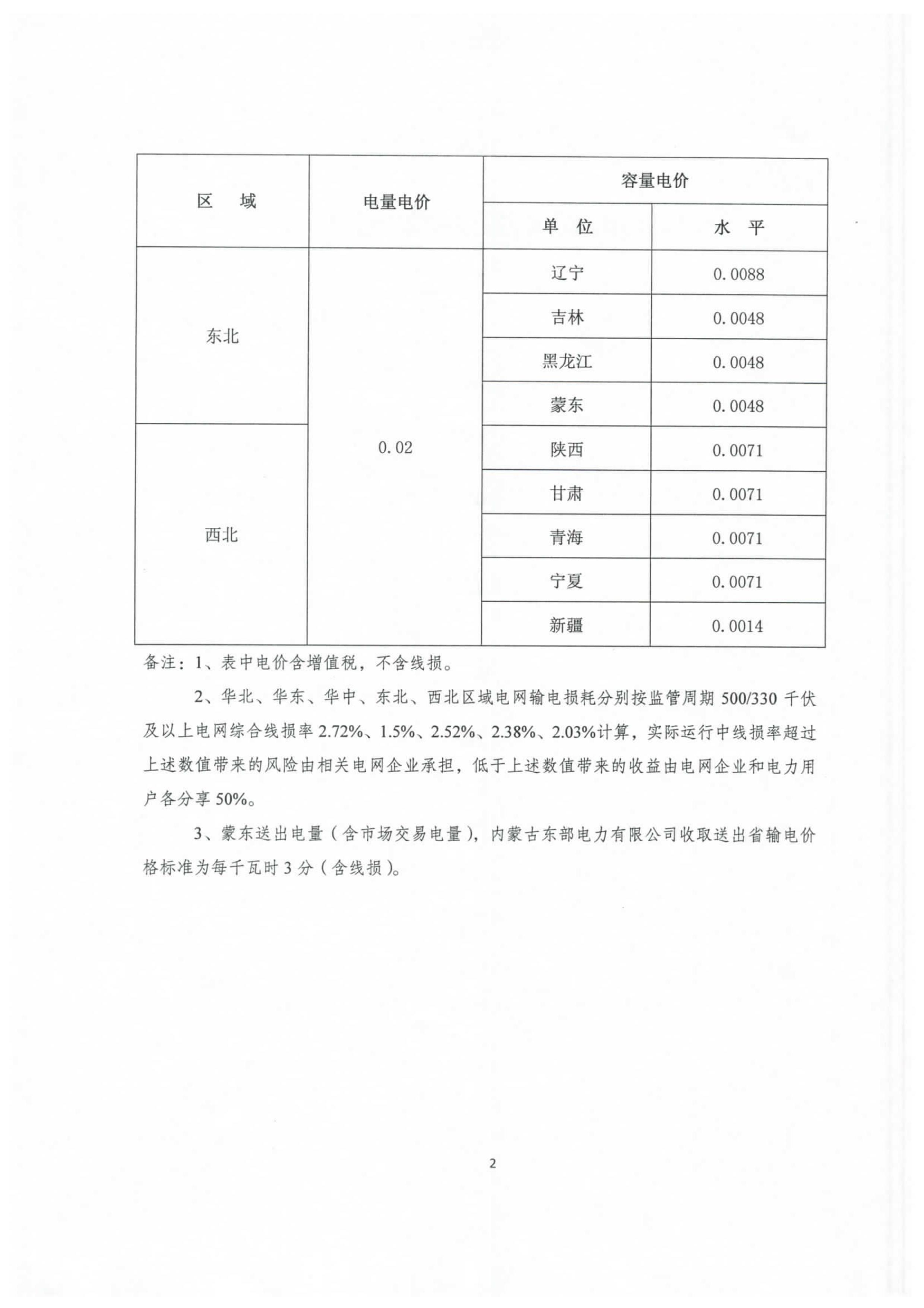 國(guó)家發(fā)改委日前印發(fā)了《關(guān)于核定區(qū)域電網(wǎng)2018—2019年輸電價(jià)格的通知》,通知中規(guī)定了華北、華東、華中、東北、西北區(qū)域電網(wǎng)首個(gè)監(jiān)管周期(2018年1月1日—2019年12月31日)兩部制輸電價(jià)格水平,其中:電量電價(jià)隨區(qū)域電網(wǎng)實(shí)際交易結(jié)算電量收取,由購(gòu)電方承擔(dān);容量電價(jià)隨各省級(jí)電網(wǎng)終端銷(xiāo)售電量(含市場(chǎng)化交易電量)收取。西北區(qū)域電網(wǎng)中,新疆電量電價(jià)為0.02元/千瓦時(shí),容量電價(jià)為0.0014元/千瓦時(shí)。區(qū)域電網(wǎng)容量電價(jià)作為上級(jí)電網(wǎng)分?jǐn)傎M(fèi)用通過(guò)省級(jí)電網(wǎng)輸配電價(jià)回收,不再向市場(chǎng)交易用戶(hù)收??;若首個(gè)監(jiān)管周期未納入省級(jí)電網(wǎng)輸配電價(jià),則需向市場(chǎng)交易用戶(hù)單獨(dú)收取。