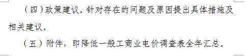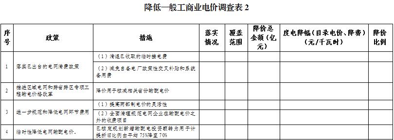 (二)請各電網(wǎng)企業(yè)按照《電網(wǎng)企業(yè)協(xié)助調(diào)查工作指引》(見附件2)要求,于每月15日前向第三方評估工作組報送電網(wǎng)企業(yè)落實一般工商業(yè)降價措施情況調(diào)查表;2019年1月15日前就電網(wǎng)企業(yè)落實國家降低電價政策措施情況,形成書面報告報第三方評估工作組;指導(dǎo)各省級電網(wǎng)企業(yè)配合地方工業(yè)和信息化主管部門,做好自評估相關(guān)工作。