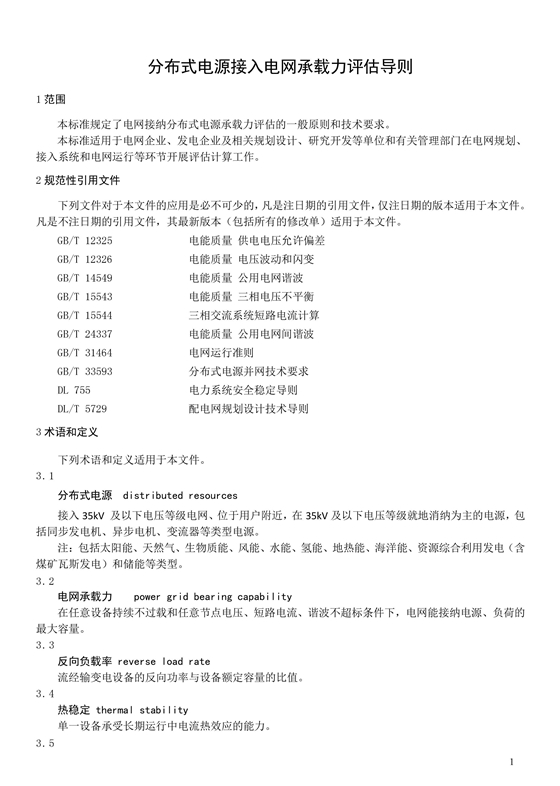 行業(yè)標(biāo)準(zhǔn)|《分布式電源接入電網(wǎng)承載力評(píng)估導(dǎo)則》征求意見(jiàn)