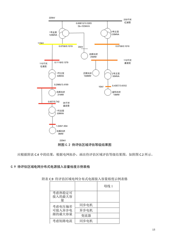 18、本導(dǎo)則第9章中分層分區(qū)是指根據(jù)電壓等級(jí)和分布式電源公共并網(wǎng)點(diǎn)的供電范圍,對(duì)不同母線的供電范圍內(nèi)電網(wǎng)承載分布式電源能力進(jìn)行評(píng)級(jí)。上下級(jí)電網(wǎng)是指110kV及以下電網(wǎng),上一級(jí)電網(wǎng)供電范圍覆蓋下一級(jí)電網(wǎng)。