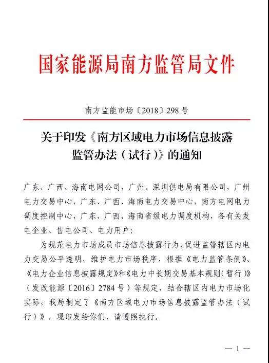南方區(qū)域電力市場(chǎng)信息披露監(jiān)管辦法(試行)