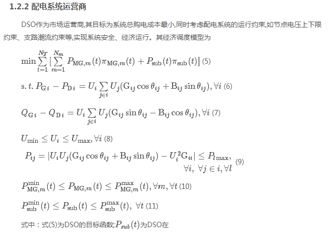 上述文獻的主要研究對象集中在輸電側,對配電側市場,尤其是微電網(wǎng)參與下的配電側市場交易和競價機制研究較少。文獻[17-19]雖然考慮了配電市場環(huán)境下微電網(wǎng)的博弈競價,但未考慮配電系統(tǒng)的網(wǎng)架結構和潮流分布對市場競價結果的影響。實際上,在配電網(wǎng)中,系統(tǒng)的節(jié)點電壓和潮流分布(如網(wǎng)損等)將受到不同接入位置的微電網(wǎng)上網(wǎng)電量的影響,系統(tǒng)運營商通過對微電網(wǎng)出力的優(yōu)化,能夠有效降低系統(tǒng)的網(wǎng)損,從而節(jié)約購電成本。在這種情況下,微電網(wǎng)間的博弈不僅取決于報價,還與系統(tǒng)的網(wǎng)架結構、潮流分布以及自身接入位置有關。此外,隨著未來零售市場的開放程度不斷加深,一個零售商可能會投資多個微電網(wǎng),此時多個微電網(wǎng)之間在博弈層面上是一種聯(lián)盟的形式,追求的是整體利益的最大化。因此,有必要對這種情況下微電網(wǎng)的競價策略和市場的交易進行研究和分析。