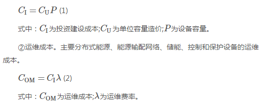 ①投資建設(shè)成本。主要分布式能源、能源輸配網(wǎng)絡(luò)、儲能、控制和保護設(shè)備的投資建設(shè)成本。