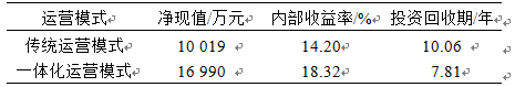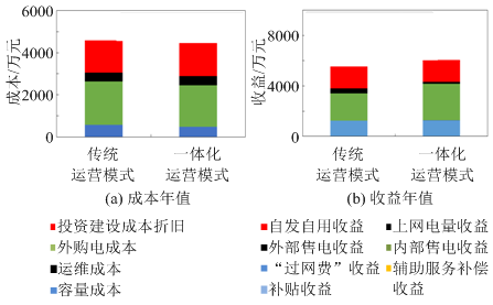 圖11和表6為傳統(tǒng)運(yùn)營模式和一體化運(yùn)營模式下,微網(wǎng)的成本/收益年值以及經(jīng)濟(jì)性對比情況。