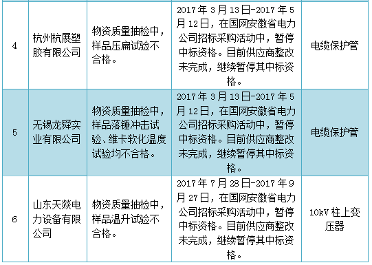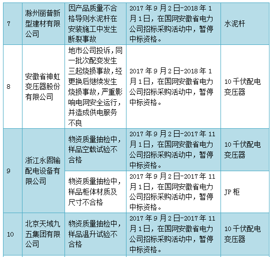國網(wǎng)(安徽)通報的供應(yīng)商不良行為處理情況(2017.9)