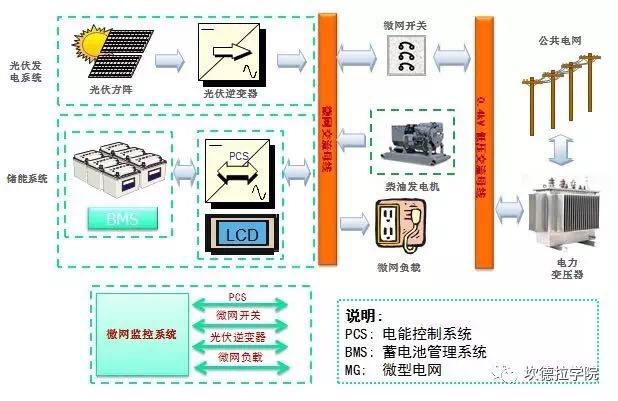 下圖是以光伏系統(tǒng)和柴油機為主的分布式能源微電網(wǎng)的結(jié)構(gòu)和組成:
