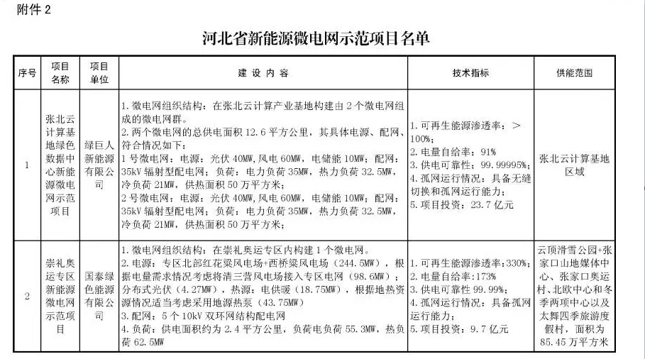 河北省明確首批4個多能互補和3個新能源微電網(wǎng)示范項目