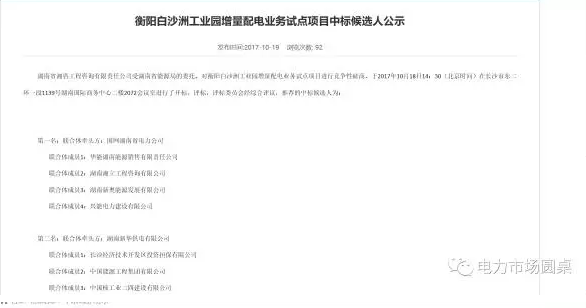 湖南省第一批四個增量配網(wǎng)的中標候選人已經(jīng)在省招投標監(jiān)管網(wǎng)上進行公示,中標結(jié)果如下: