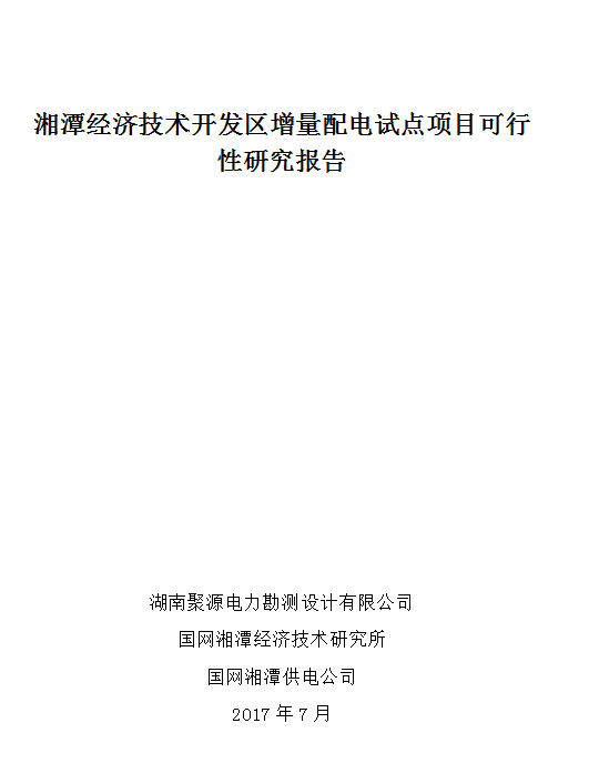 由湖南聚源電力勘測設(shè)計有限公司、國網(wǎng)湘潭經(jīng)濟技術(shù)研究所、國網(wǎng)湘潭供電公司聯(lián)合發(fā)布了《湘潭經(jīng)濟技術(shù)開發(fā)區(qū)增量配電試點項目可行性研究報