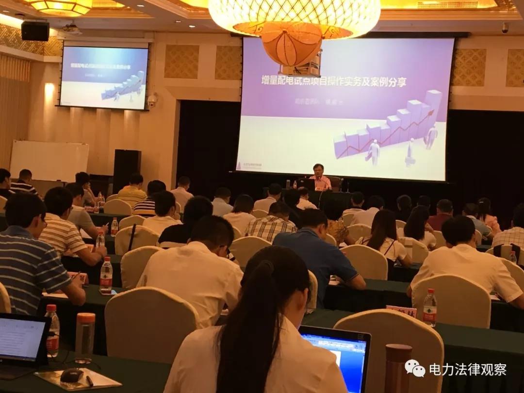 在長(zhǎng)達(dá)三個(gè)多小時(shí)的“增量配電試點(diǎn)項(xiàng)目操作實(shí)踐及案例分享”的專(zhuān)題講座中,展律師結(jié)合各地增量配電改革項(xiàng)目實(shí)踐,深度解讀了增量配電改革政策要點(diǎn),分析了大量實(shí)操案例,總結(jié)并分析了各地政府部門(mén)在增量配電改革中經(jīng)常遇到的20多個(gè)常見(jiàn)問(wèn)題。其中,對(duì)試點(diǎn)項(xiàng)目經(jīng)常遇到的股權(quán)結(jié)構(gòu)、資產(chǎn)處置方案、區(qū)域劃分等核心進(jìn)行了深入解析。培訓(xùn)現(xiàn)場(chǎng)反響熱烈。