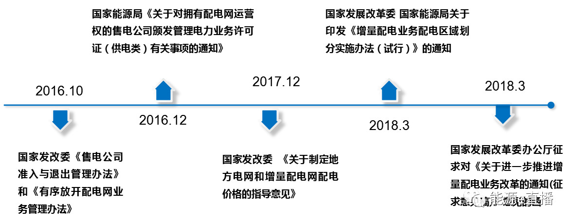 自2015年發(fā)布了電改九9號文后,國家發(fā)改委能源局也陸續(xù)發(fā)布了很多增量配電網(wǎng)業(yè)務(wù)相關(guān)政策,主要從增量配電網(wǎng)的準(zhǔn)入、配電區(qū)域劃分、配電價格的制定以及電力業(yè)務(wù)許可證申請等方面進(jìn)行了具體指導(dǎo)。具體政策包括: