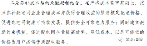 實際上在2017年,國家發(fā)改委發(fā)布了《關(guān)于制定地方電網(wǎng)和增量配電網(wǎng)配電價格的指導(dǎo)意見(發(fā)改價格規(guī)﹝2017﹞2269號)》,其原則是“彌補成本與約束激勵相結(jié)合,在嚴(yán)格成本監(jiān)審基礎(chǔ)上,按照彌補配電網(wǎng)企業(yè)合理成本并獲得合理收益的原則核定配電價格。”