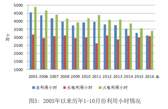 1-10月份,全國發(fā)電設備累計平均利用小時3122小時,同比降低188小時。