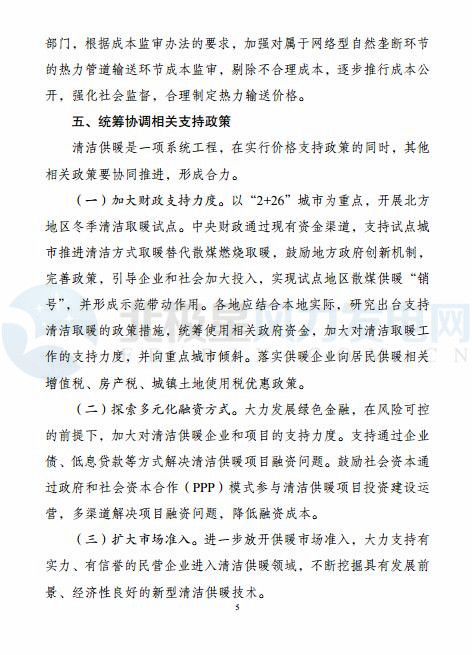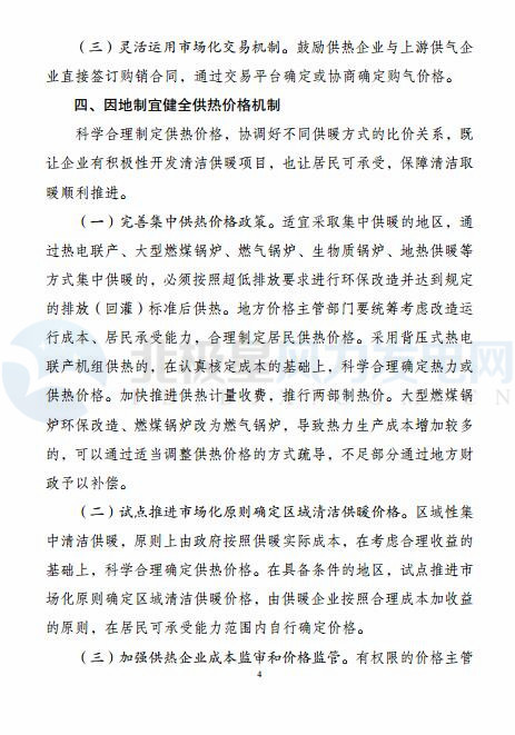 國家發(fā)展和改革委員會日前發(fā)布《關(guān)于北方地區(qū)清潔供暖價格政策的意見》,意見指出,要建立有利于清潔供暖價格機(jī)制,綜合運(yùn)用完善峰谷價格、階梯價格,擴(kuò)大市場化交易等價格支持政策,促進(jìn)北方地區(qū)加快實(shí)現(xiàn)清潔供
